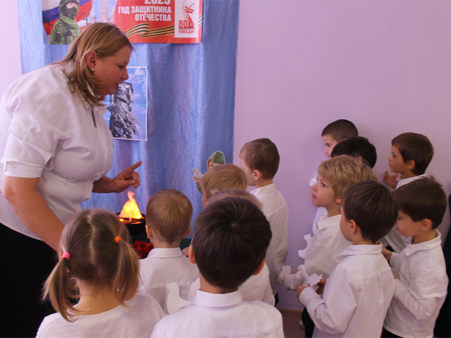 Дети узнали, что Вечный огонь — это неугасимое пламя, которое символизирует вечную память народа о павших героях, борцах за свободу и честь Родины. Он является неотъемлемой частью мемориальных комплексов, а также воплощает скорбь, благодарность и силу национального духа.