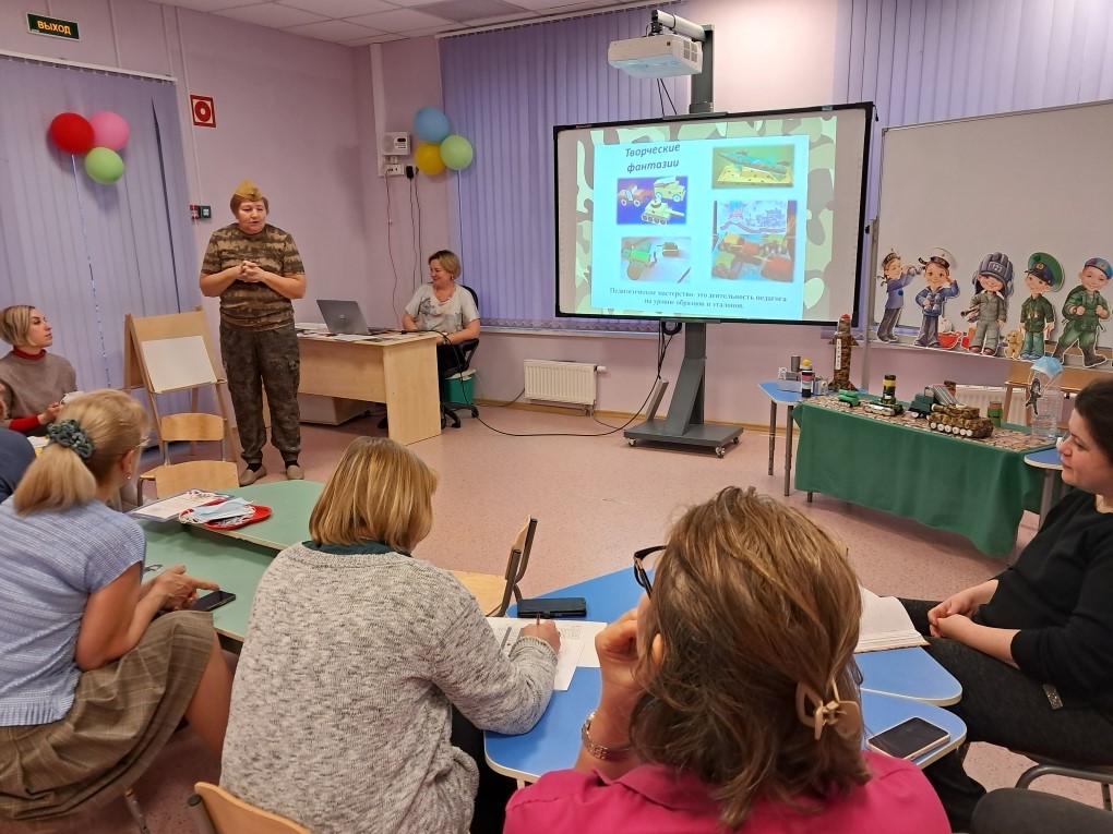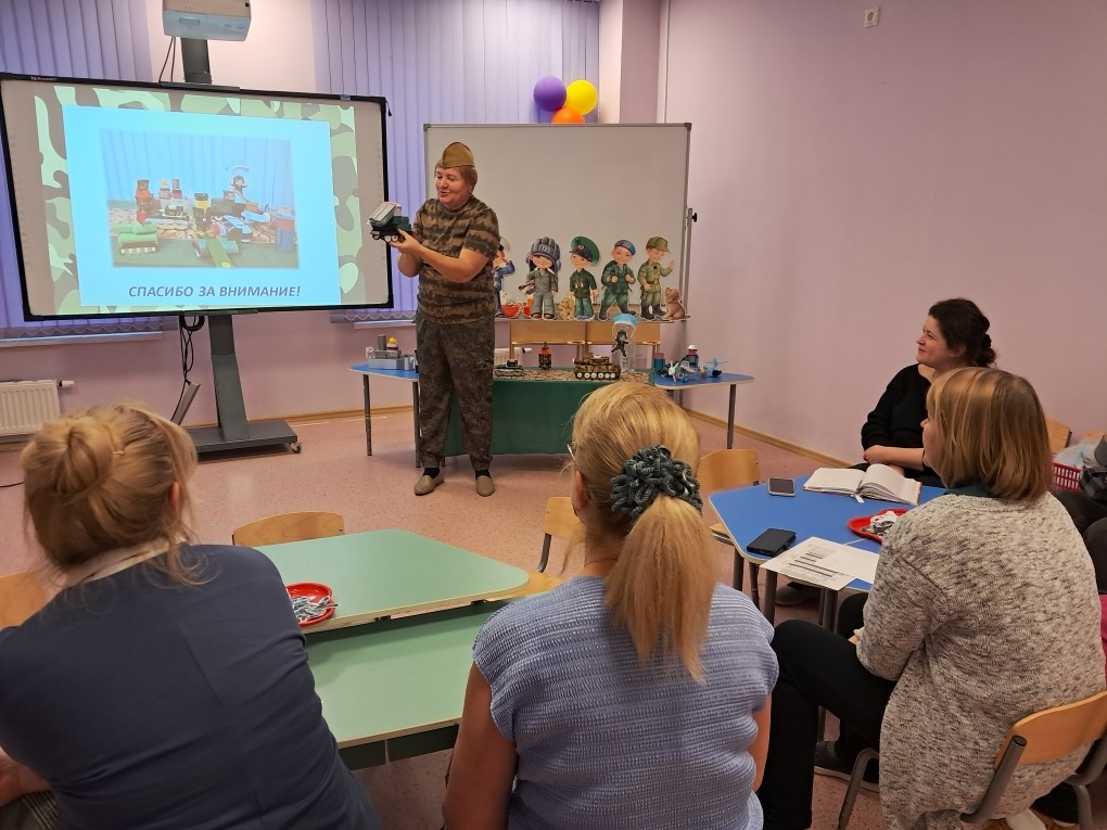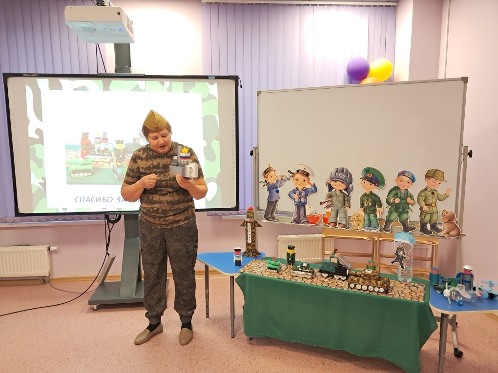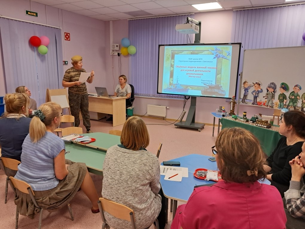 Воспитатель Ольга Александровна Корнева провела для педагогов мастер-класс "Мастерим с детьми. Объемные модели военной техники".
