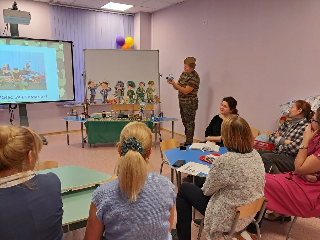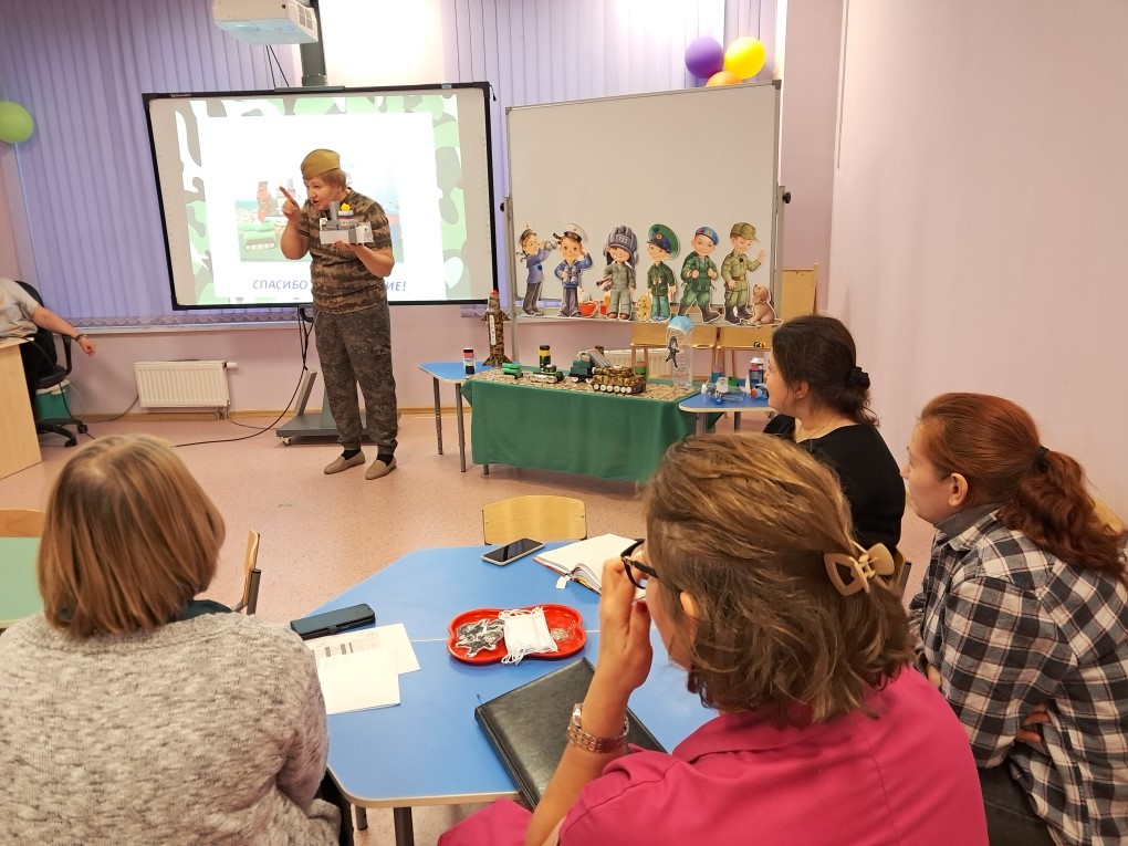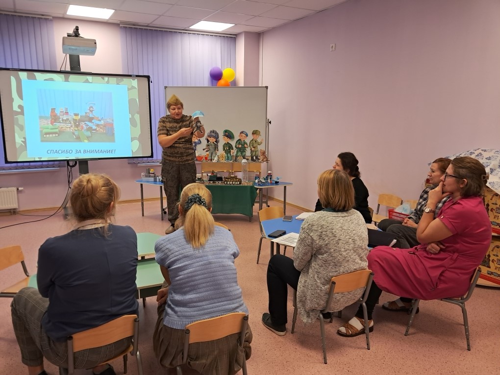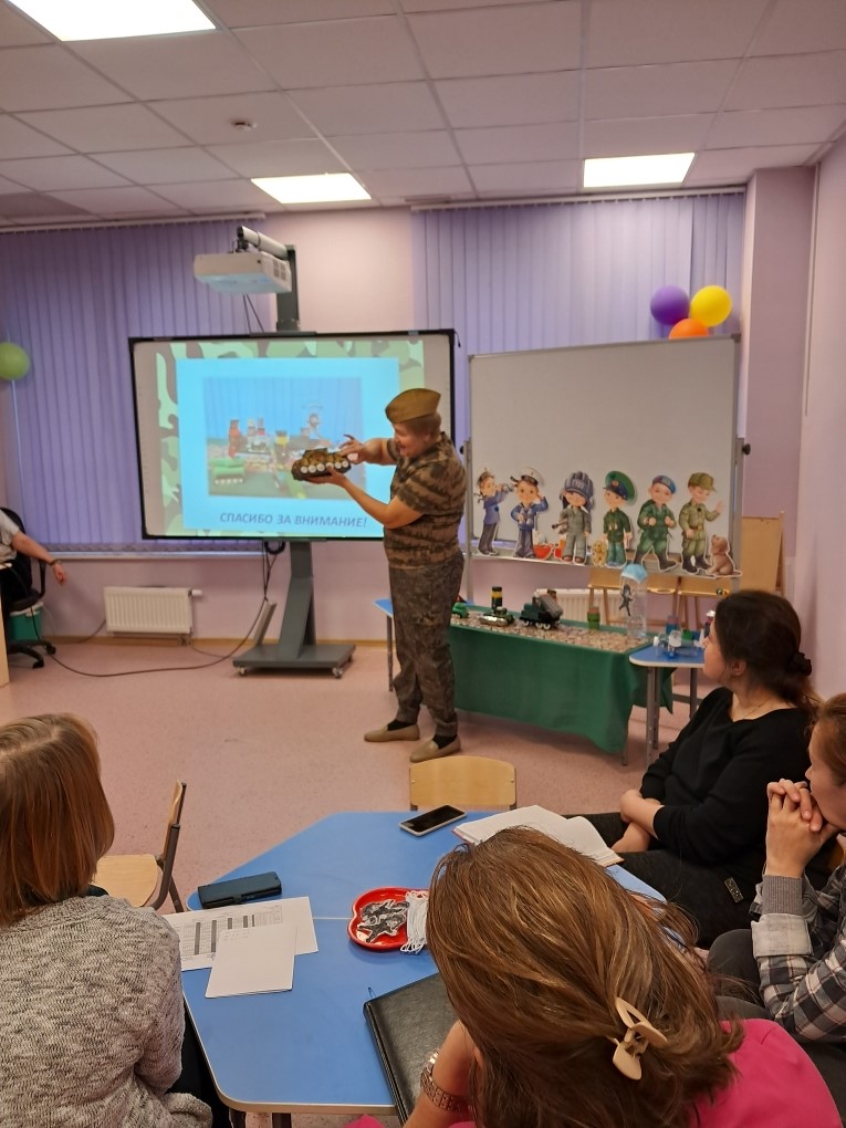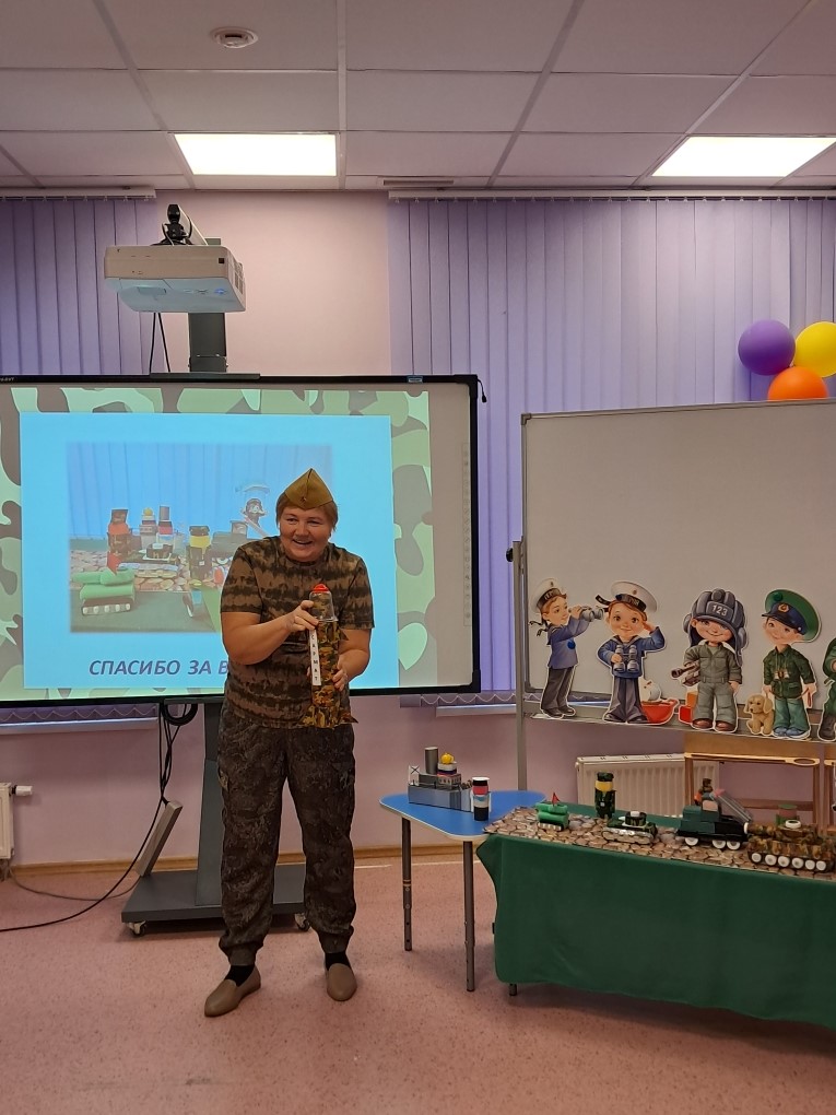 Воспитатель Ольга Александровна Корнева провела для педагогов мастер-класс "Мастерим с детьми. Объемные модели военной техники".