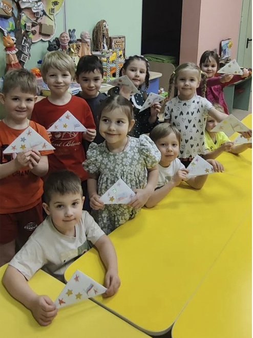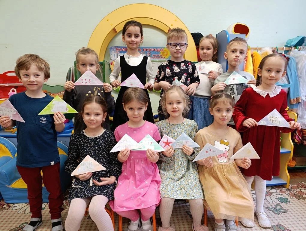 Ребята нарисовали рисунки и оформили их в виде «писем-треугольников» .