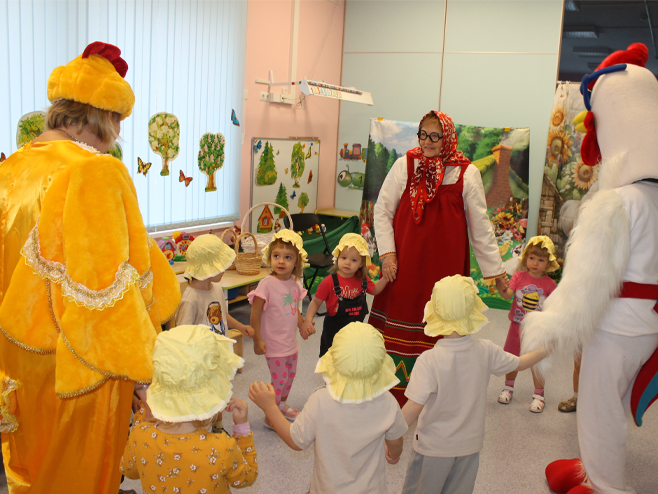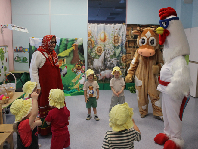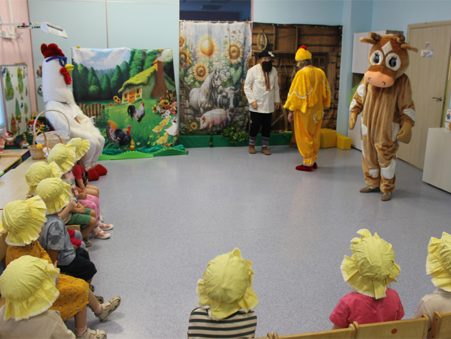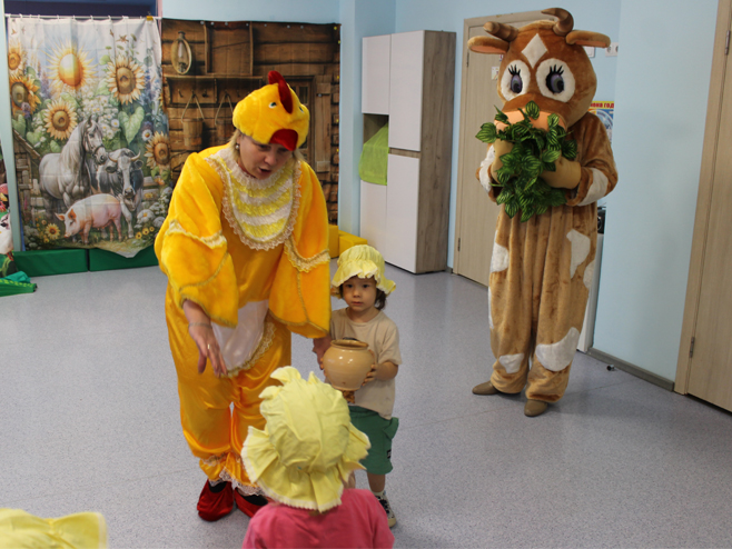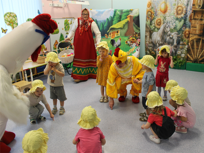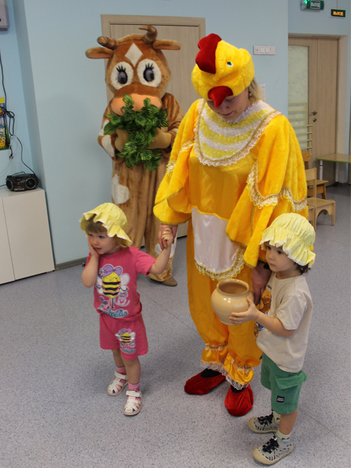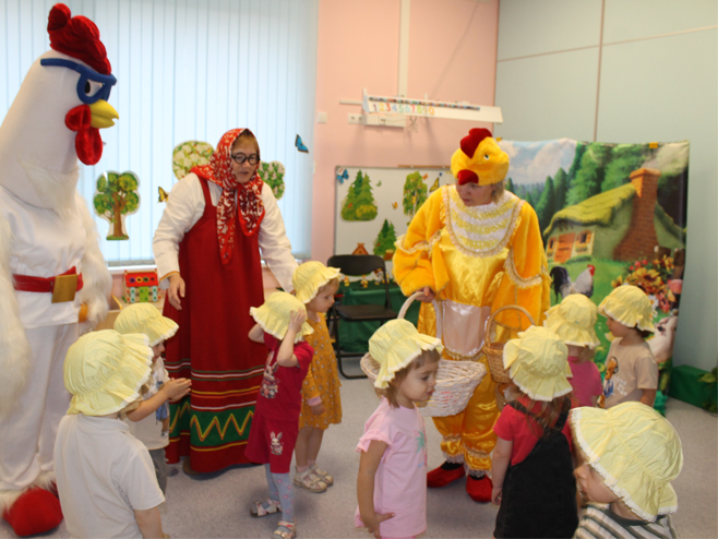 Педагоги младшей группы «Росинка» подготовили для детей театрализованное представление по мотивам сказки «Петушок и бобовое зернышко».