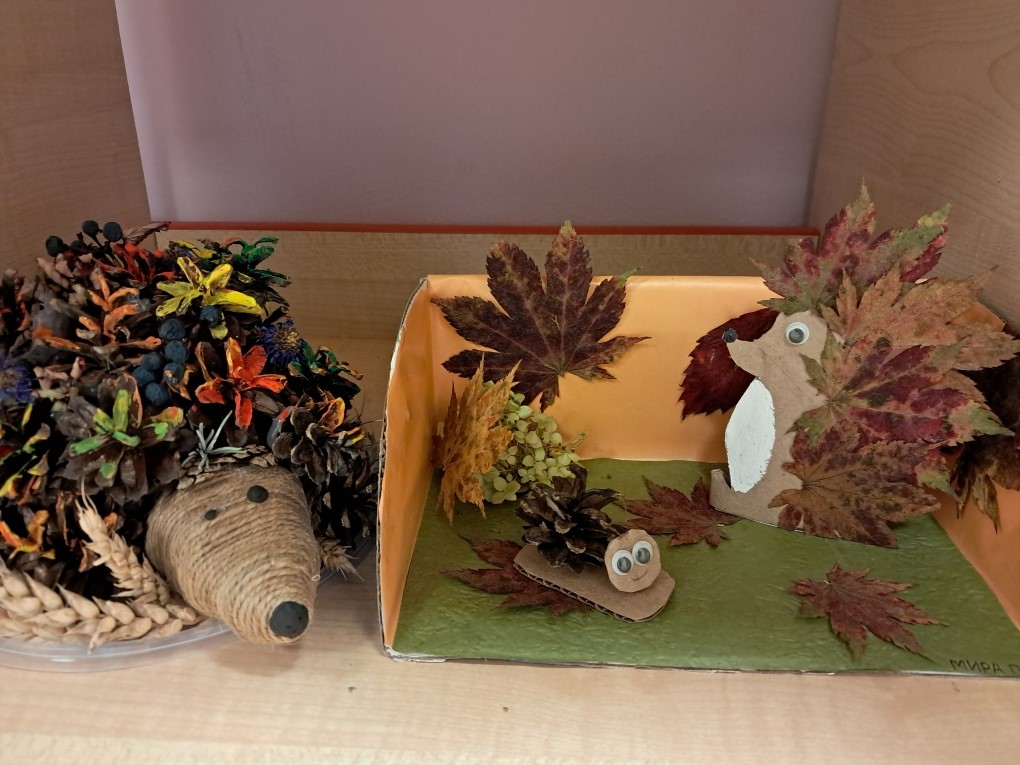И вот перед нами настоящее «окно» в осень, с ее красками, дарами огородов и садов, шелестом опавшей листвы, затаившемся в сухой траве ежиком…