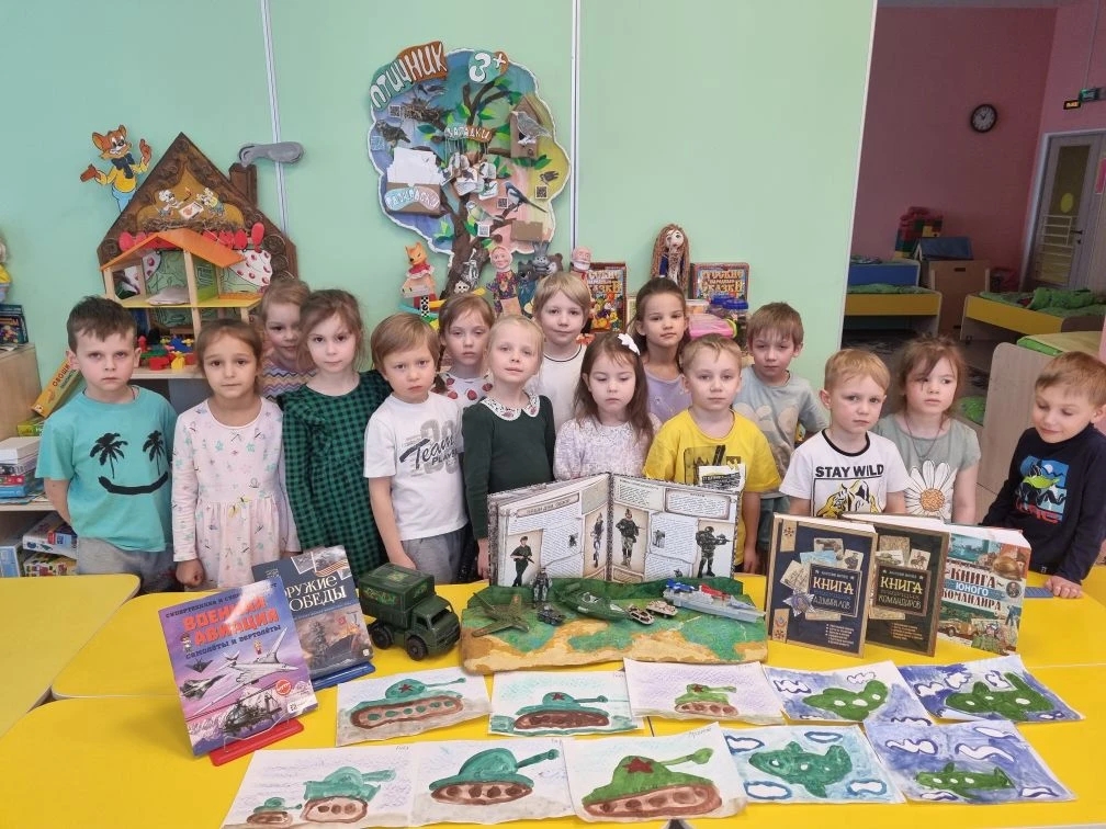 Наши воспитанники изготовили поздравительные открытки, лепили и конструировали военные самолеты, танки, корабли, нарисовали самые разнообразные рисунки, связанные с военной тематикой – это и различная военная техника, и салют над городом, и просто изображения солдат глазами детей.