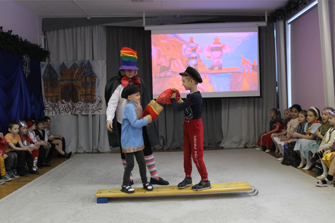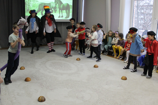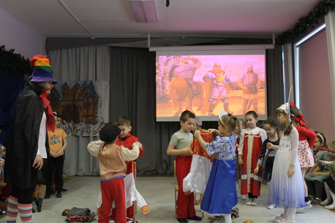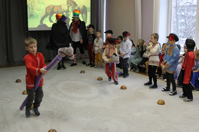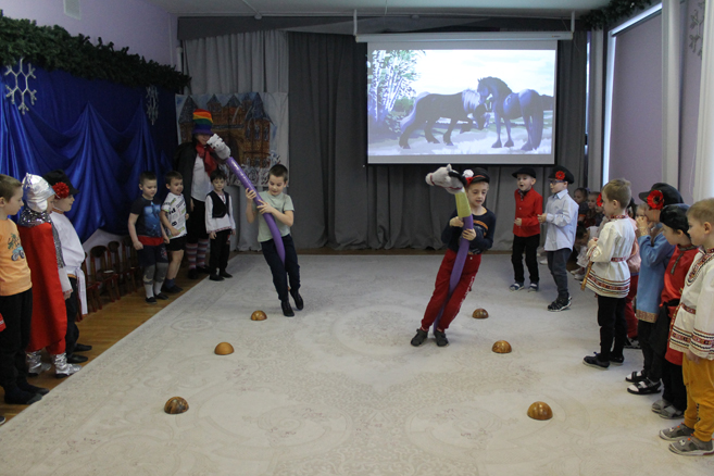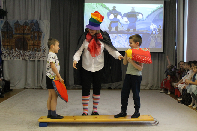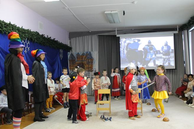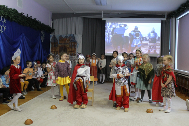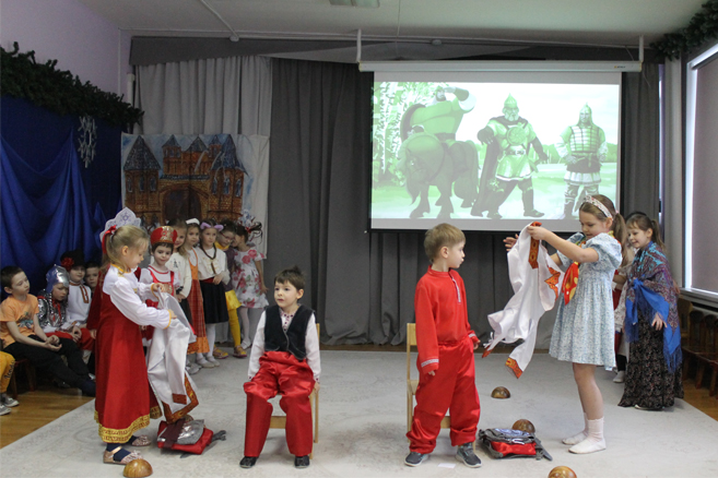 Педагоги Елена Николаевна Карасева и Наталья Алексеевна Рыбалко провели для детей театрализованный досуг «Богатыри земли русской» с целью формирования представления о героическом прошлом русского народа Древней Руси, великих русских богатырях – защитниках земли русской, воспитания в детях гордости за своих предков и желания подражать им.