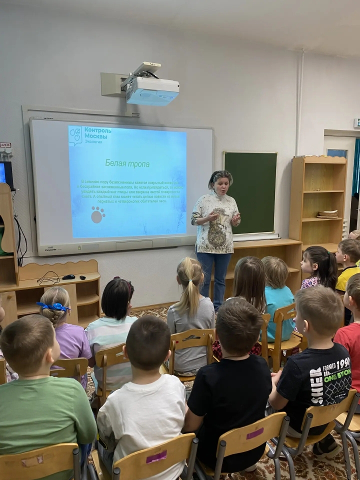 22 января сотрудник Экоцентра "Музей природы" Департамента природопользования и охраны окружающей среды Галина Викторовна Хватова провела для детей подготовительных групп "Колокольчик" и "Ромашка" экологическое занятие «Белая тропа».