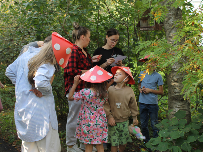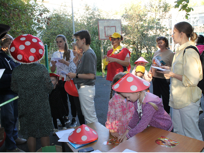 Дети и родители должны были найти спрятанные на территории детского сада грибы и ответить на сложные, но интересные вопросы о грибах. А вы знаете у кого есть шляпа без головы и нога без сапога, как отличить бледную поганку и сыроежку, с какими пятью деревьями «дружат» ценные грибы, какие грибы ищут со специально обученными собаками?