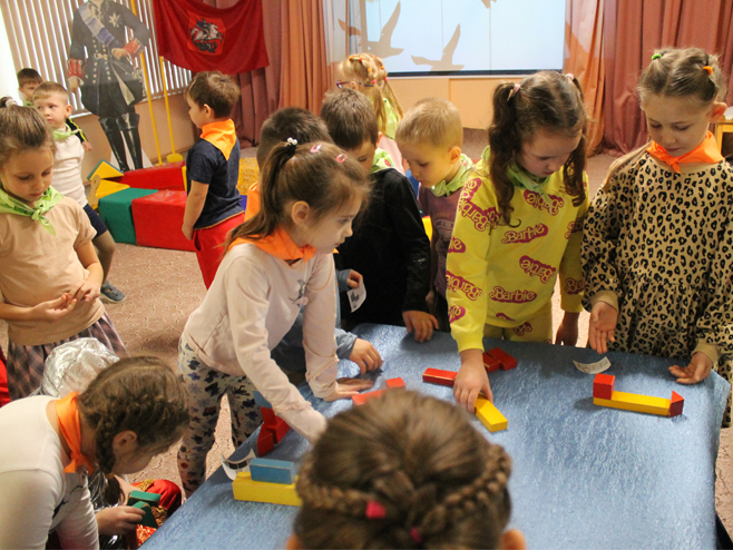 На станции "Военно-морская" дети вспомнили о роли Петра I в истории России. Именно он создал с нуля регулярную армию и военно-морской флот, преобразовал армию по европейскому образцу, разработал уставы и учредил военные школы для подготовки кадров, что позволило России стать мощной военной державой. Пётр I сыграл решающую роль в создании российского флота, лично участвовал в кораблестроении, основал первые верфи и кораблестроительные школы, что позволило России самостоятельно строить корабли, а также создал на основе личного примера и активной деятельности Морской устав, положив тем самым начало истории отечественного военно-морского флота. На этой станции ребята построили военный фрегат и собирали корабли по схемам.