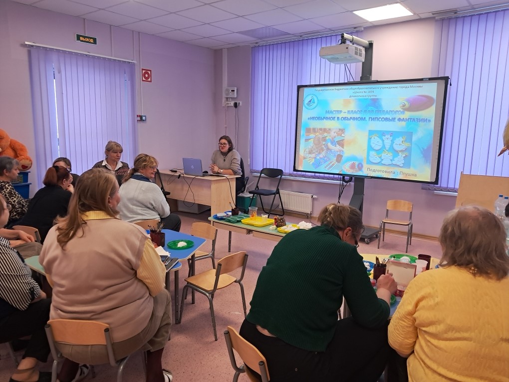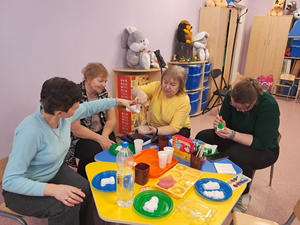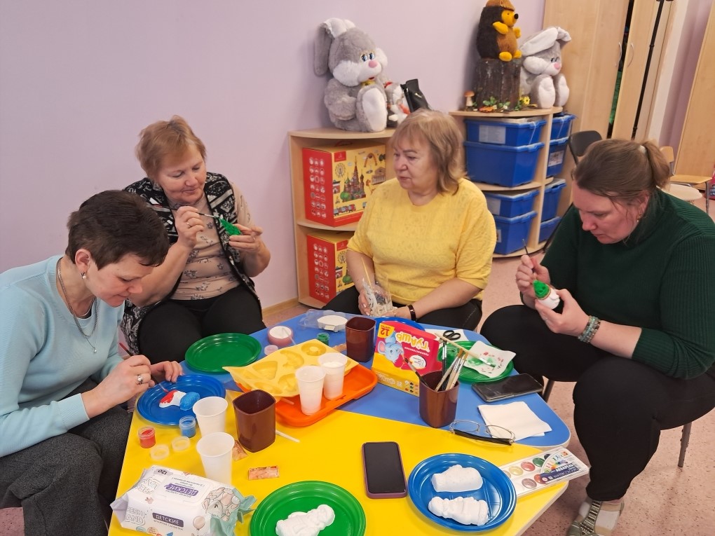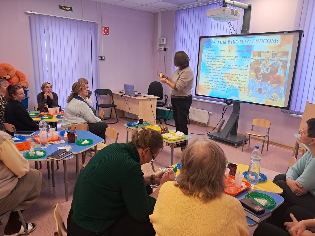 12 февраля воспитатель Елена Ивановна Птушка провела мастер-класс для педагогов "Необычное в обычном. Гипсовые фантазии"