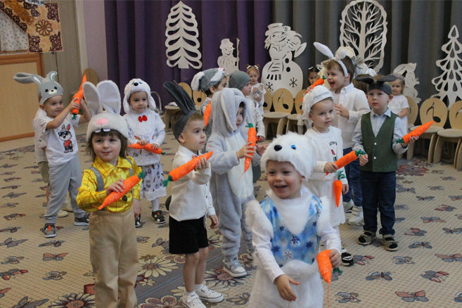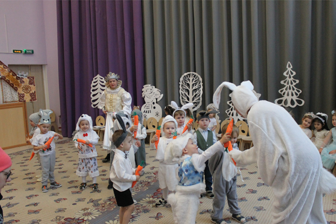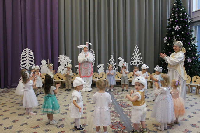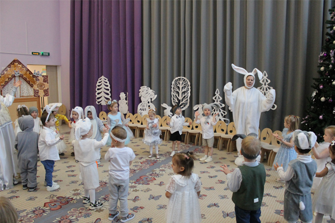 мальчики показали чудесный танец зайчиков, а девочки танец нежных очаровательных снежинок.
