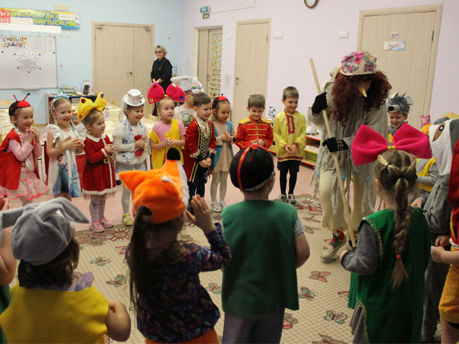Хороший эмоциональный настрой подарили ряженые детям и сотрудникам детского сада. Они исполнили колядные песни, присказки, заклички, прославляя Коляду.