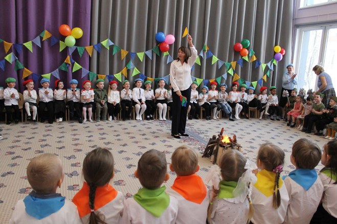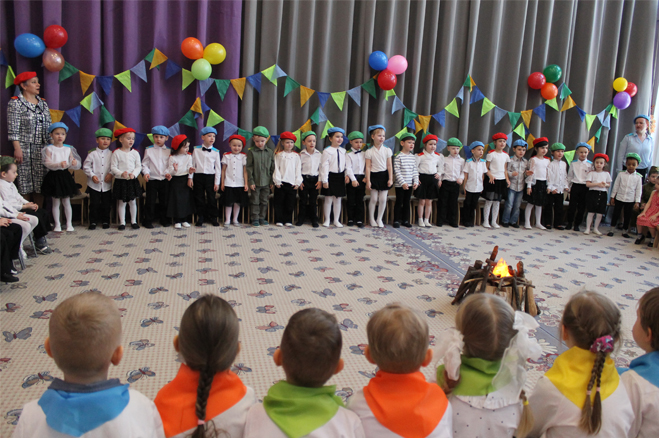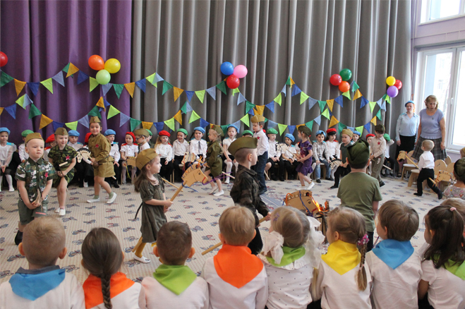 18 февраля в преддверии Дня Защитника Отечества музыкальный руководитель Наталья Алексеевна Рыбалко провела в дошкольных группах «Светлячок» военно-патриотический праздник «На привале».